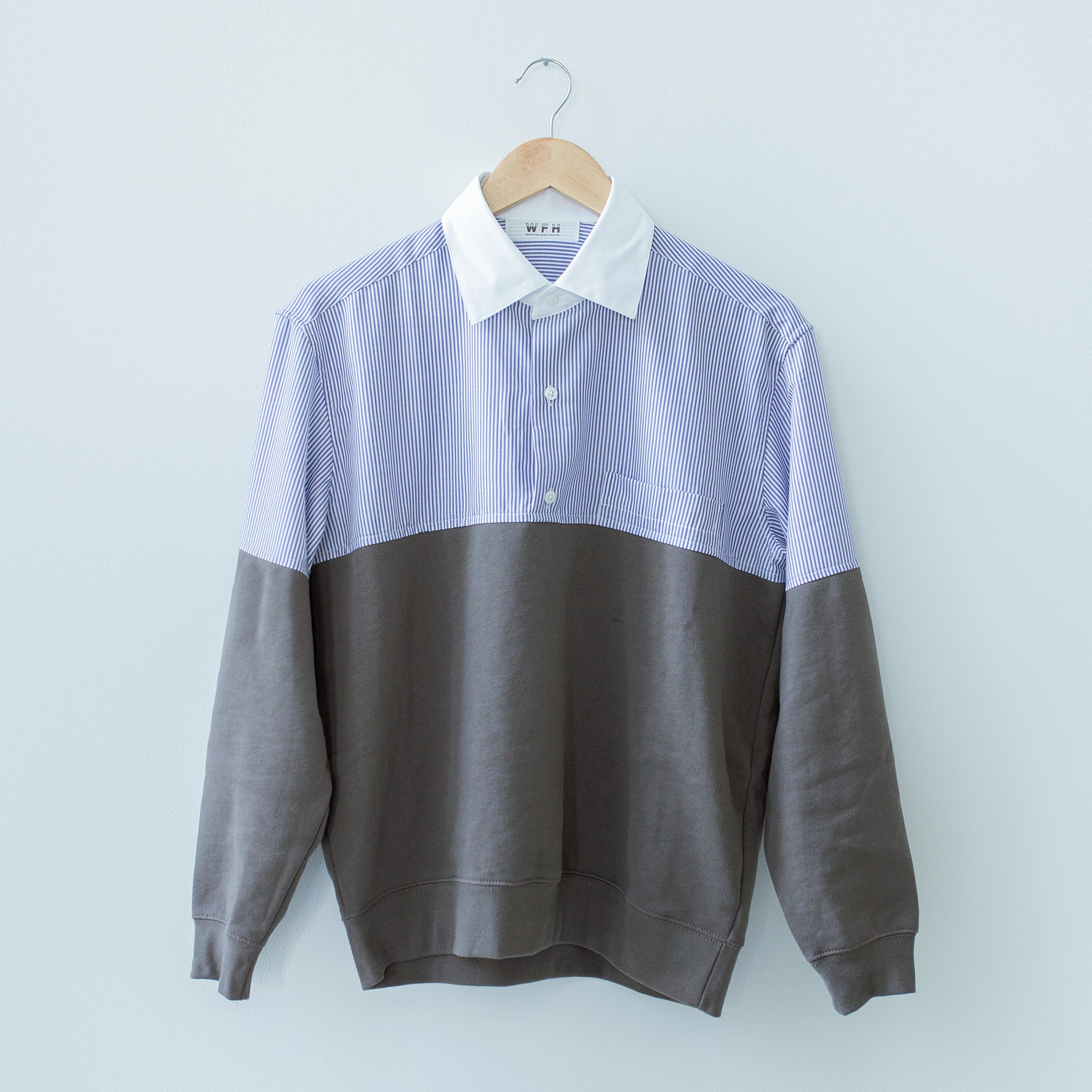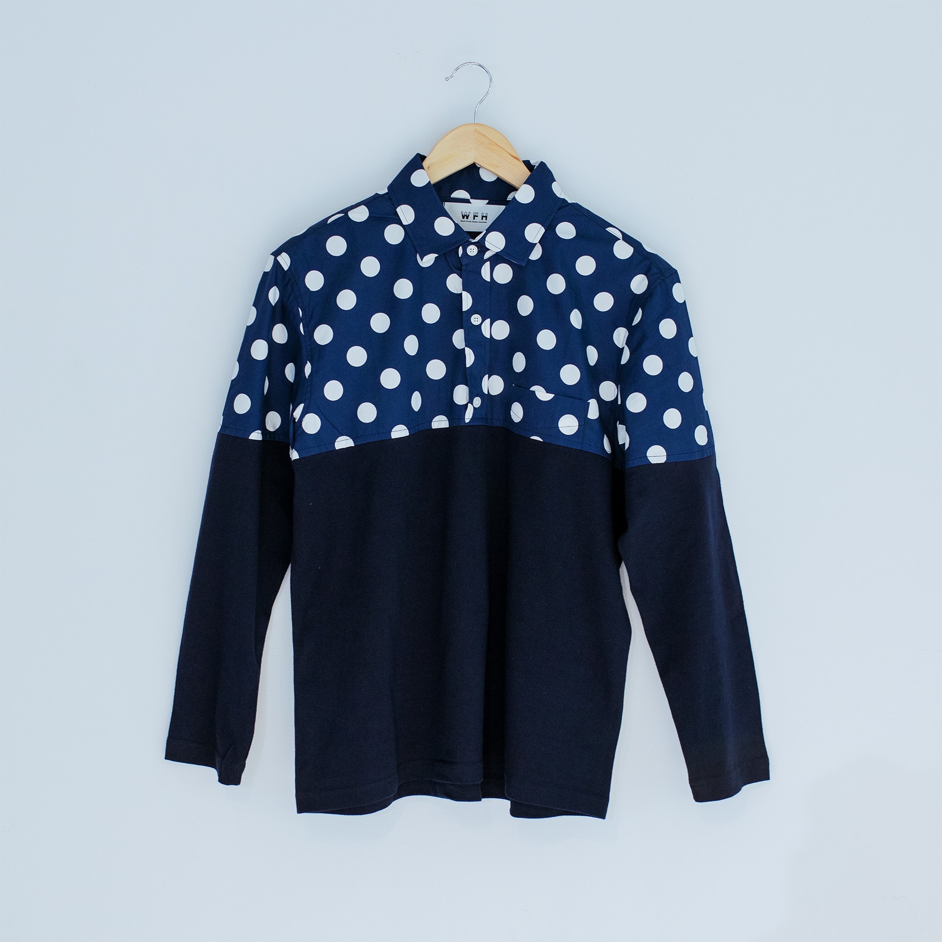WFH Jammies is a room wear solution to the problems of remote workers. It is designed with a formal style that is only visible on the video but loose & comfy outside the frame, making it a stress-free solution for wake-up presentations and client meetings before bed.