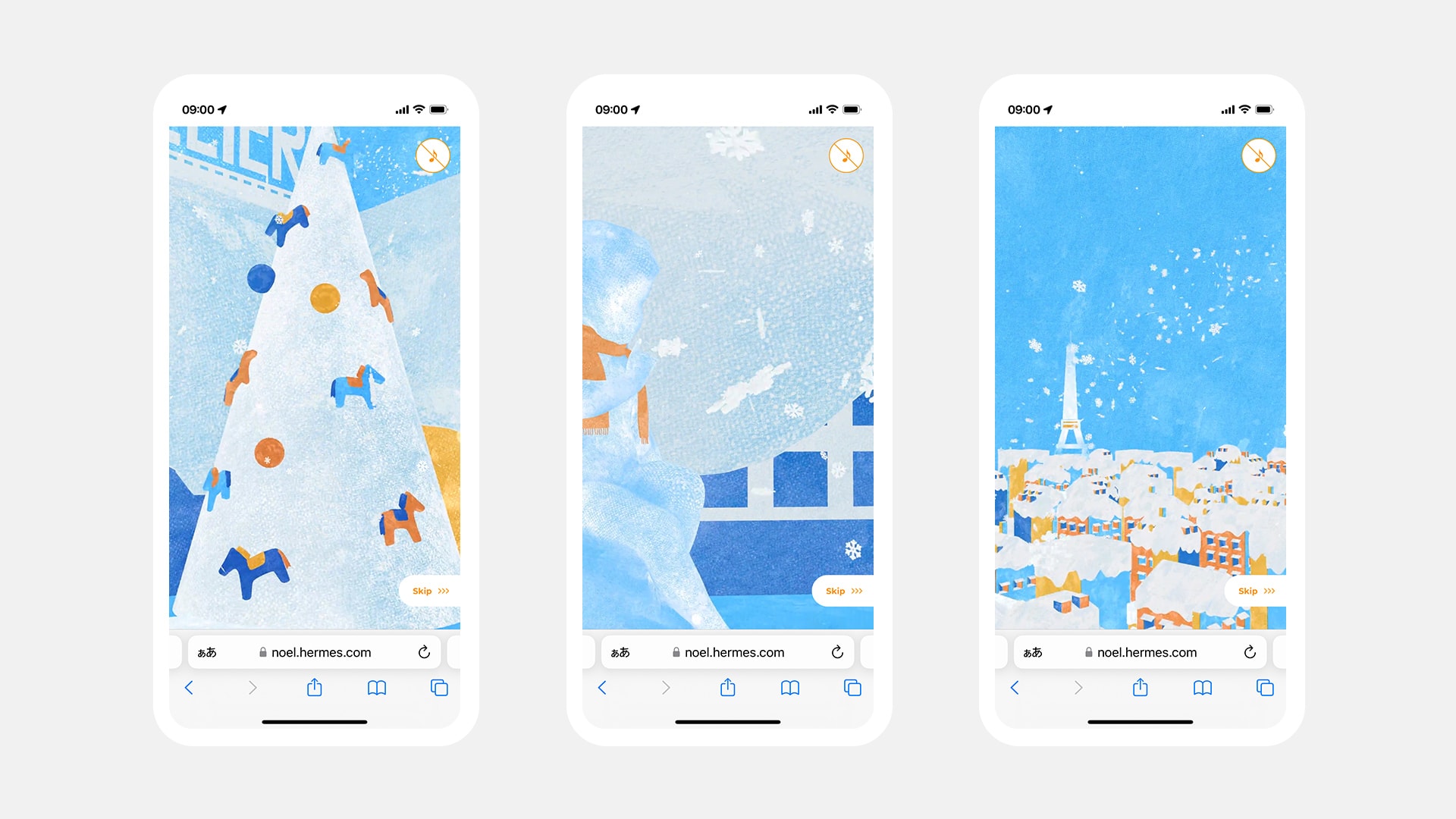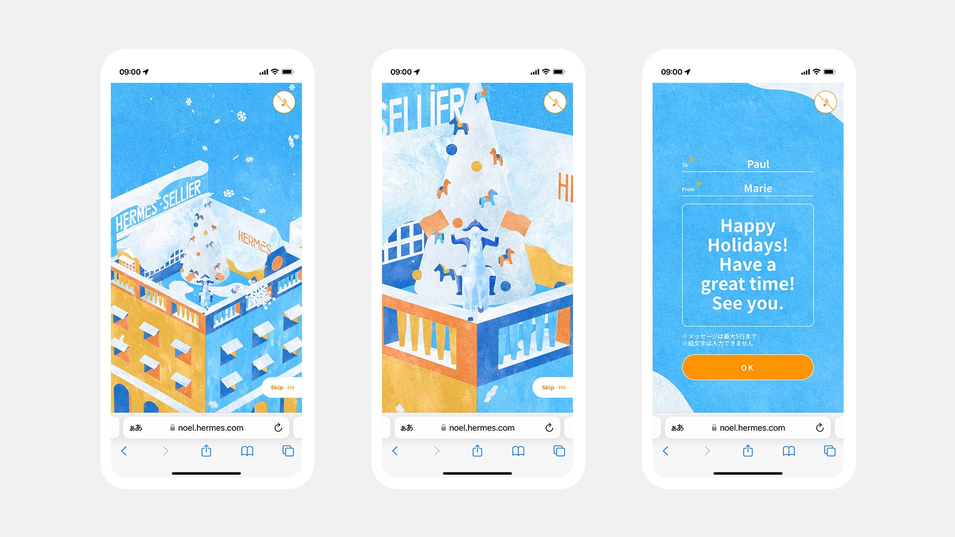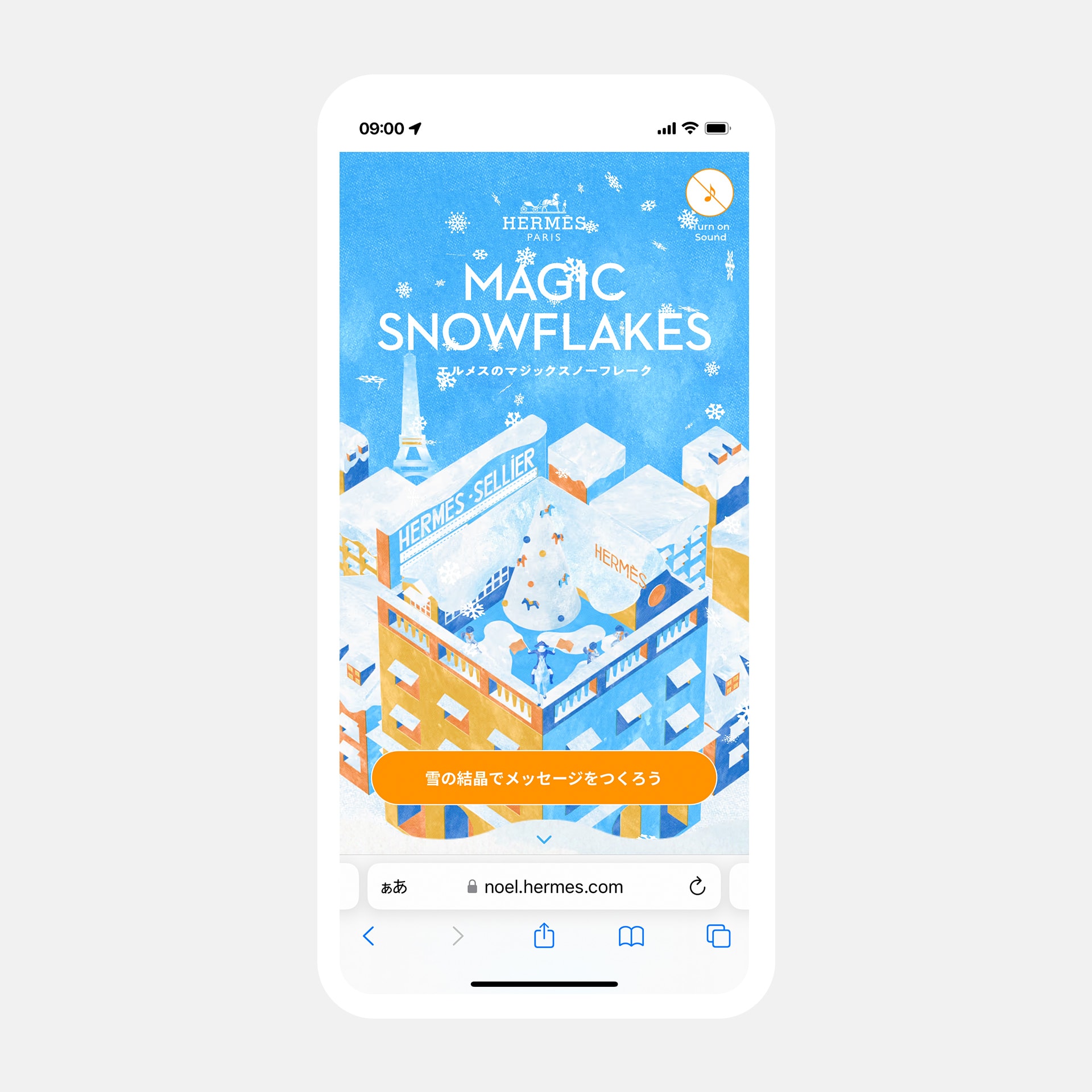 We created “Hermès Magic Snowflakes,” a campaign that allows you to create personalized messages using snowflakes falling onto the rooftop garden of the Hermès store in Paris’s Faubourg Saint-Honoré. These messages can be delivered to the recipient by blowing air onto them.