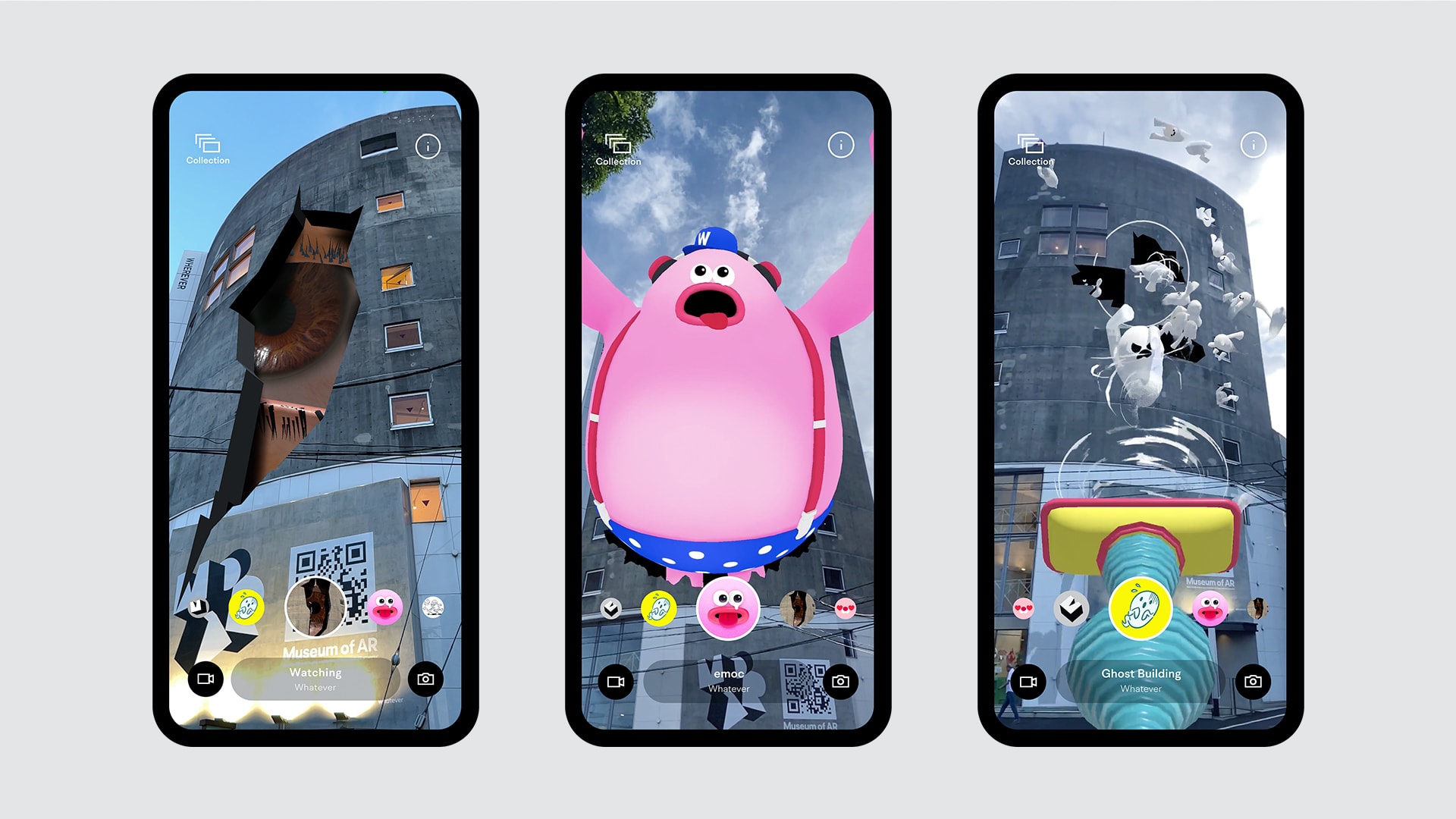 In addition to Whatever originals (a logo-popping billboard, giant monsters moving around the building, sucking in the ghosts occupying the building, a giant peeking out from the building), visitors can experience a total of 28 AR mural artworks at once, including the ones from 24 collaborating artists active in various fields, such as Ai Niina and Mayu Yukishita.
