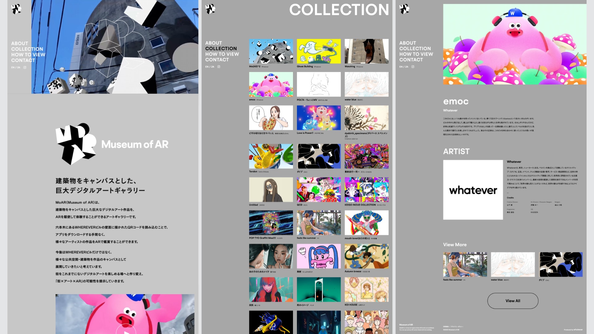 We created “MoAR – Museum of AR,” an art gallery that allows visitors to experience giant digital artwork, using the co-working building “WHEREVER (Roppongi, Tokyo)” as a canvas.