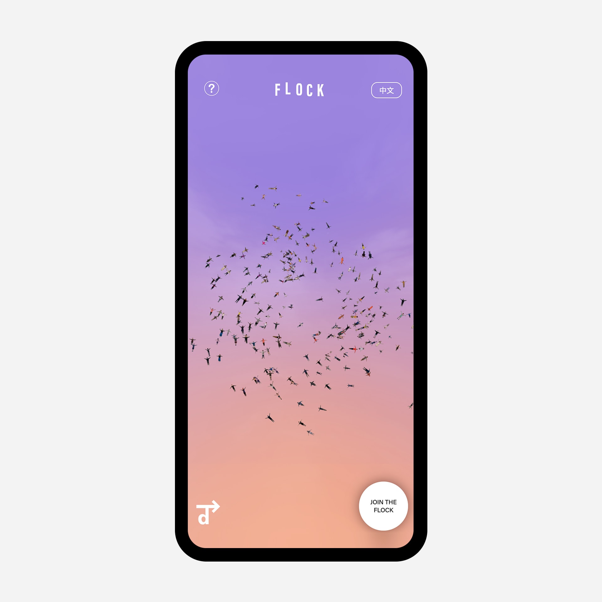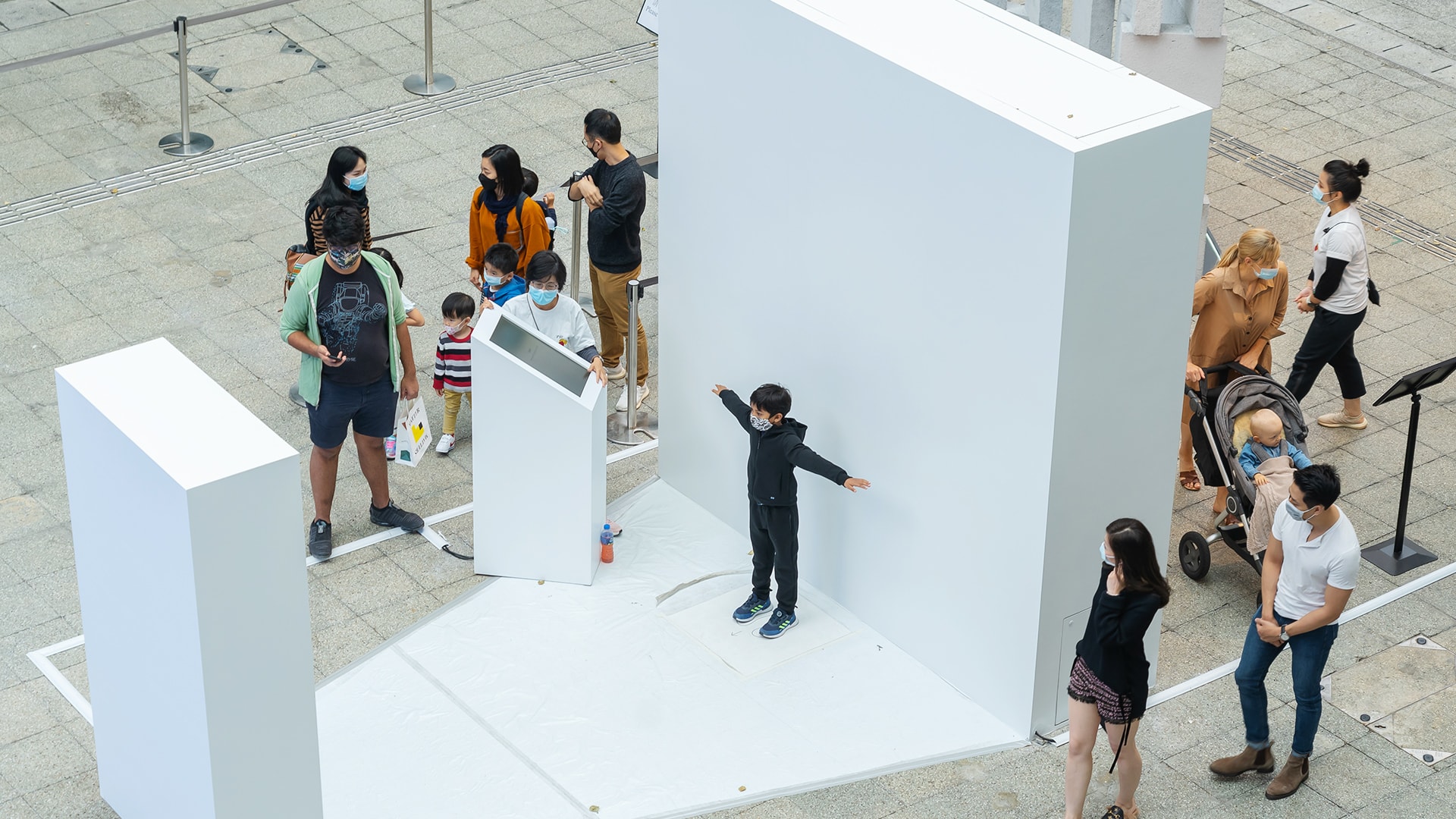 We wanted to create an experience that can somehow bring people back together to celebrate the joy of being together again, in the form of an art piece. With this in mind, we came up with an idea to create a digital art installation where people from around the world can join a gigantic flock of flying people by taking a photo of themselves. We built a photo booth where people can stand and take a full body photo. The person in the image will then flap its arms and fly up to join into the flock of others flying on a giant digital screen.