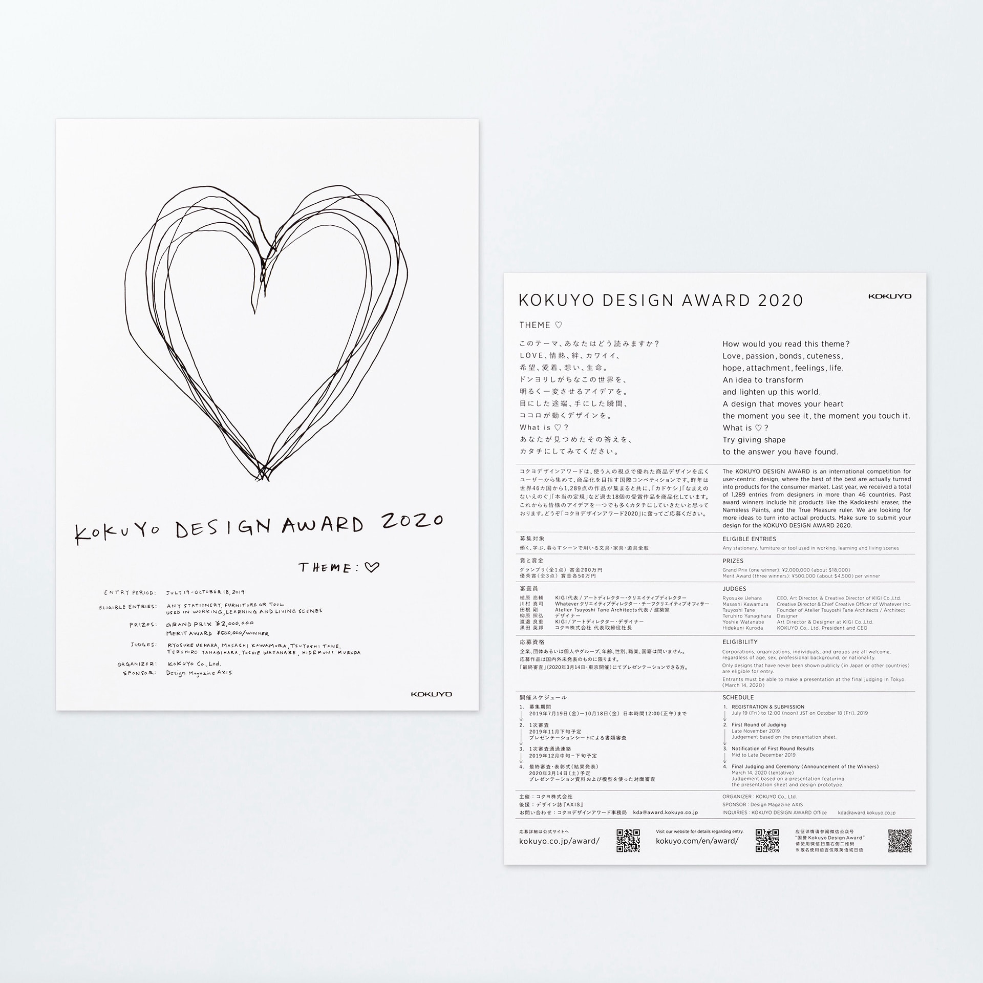 We created the overall visual design of the KOKUYO DESIGN AWARD 2020, including posters, websites, catalogs, trophies, etc.