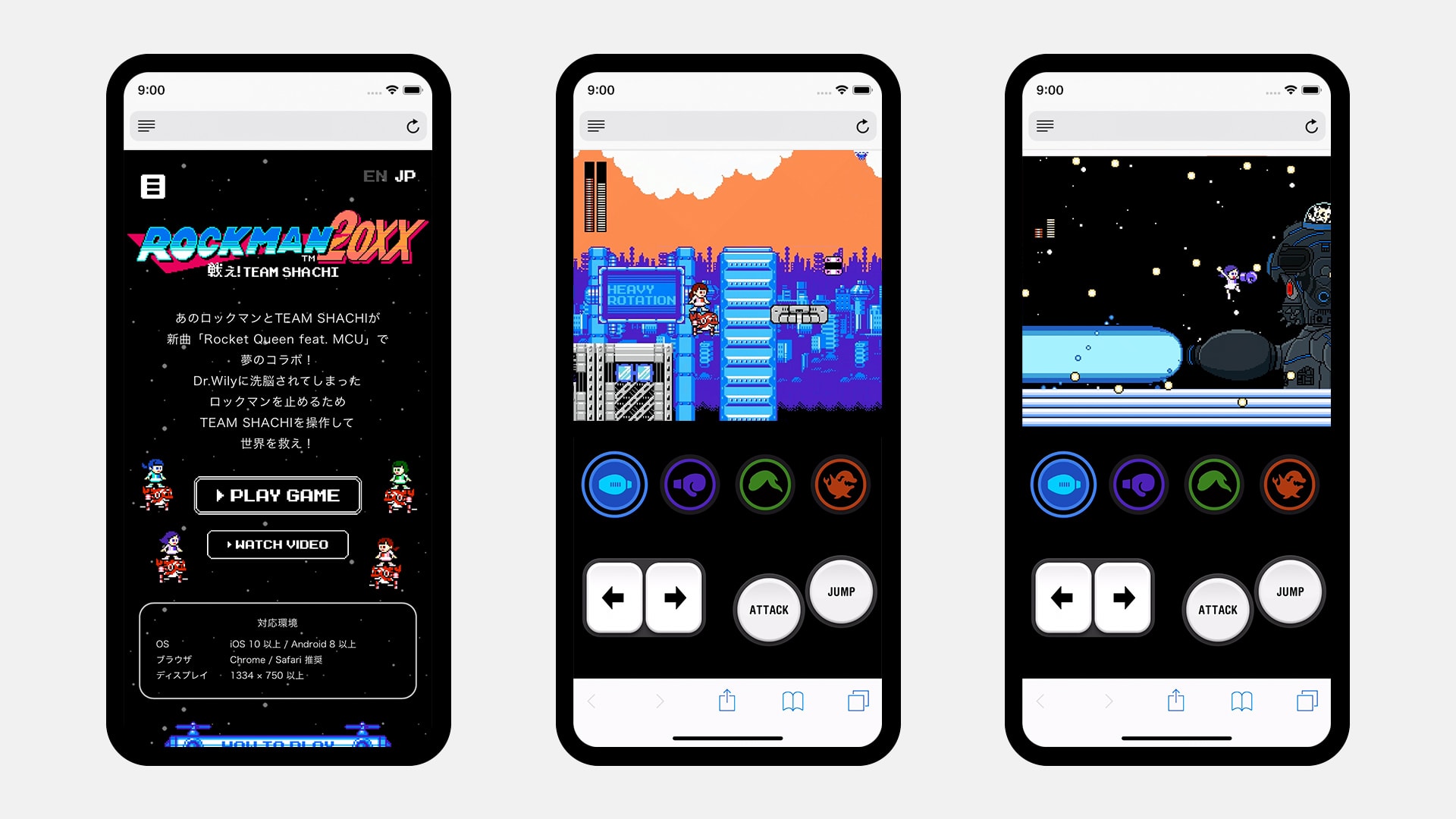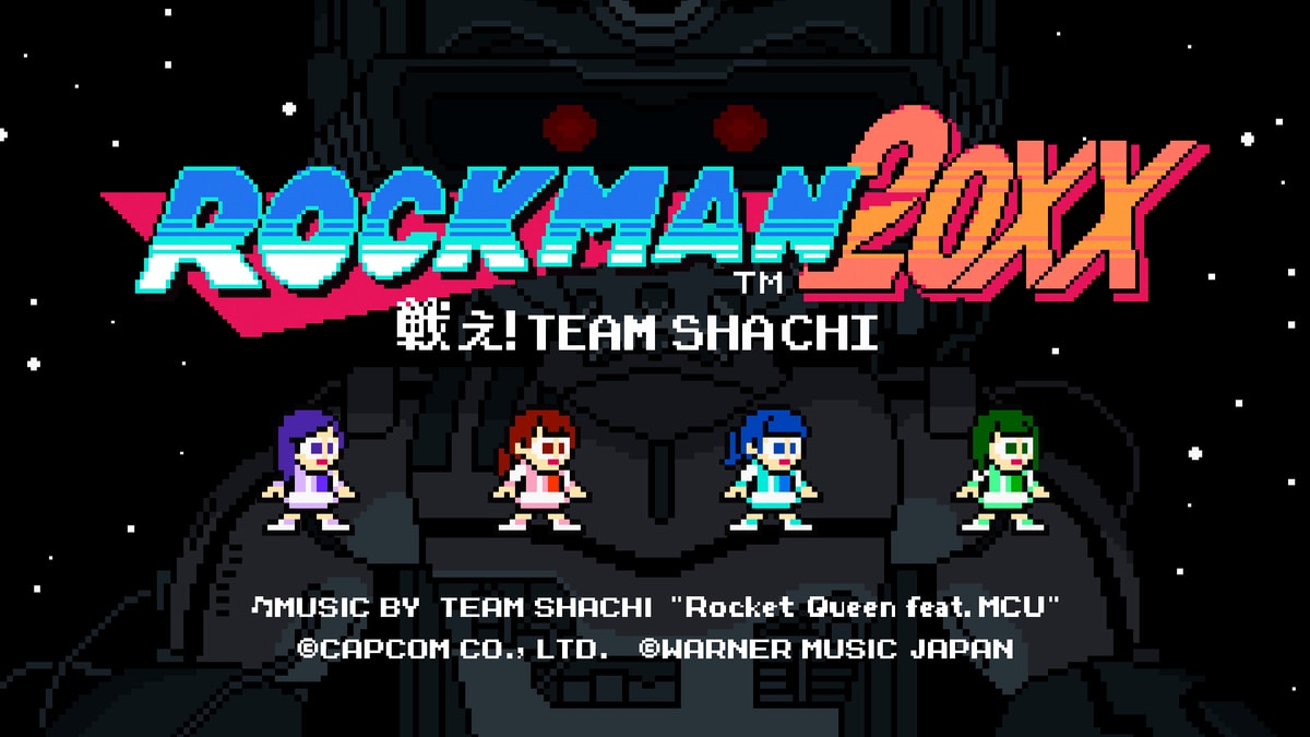 The world of this super tough smartphone game unfolds with TEAM SHACHI’s newly released “Rocket Queen feat. MCU” as its music. The game is designed based on MEGA MAN 2 with the theme of “MEGA MAN after 30 years”. You can see good old boss characters Metalman and Airman from MEGA MAN 2, not to mention MEGA MAN himself, all appear as their aged version. You won’t get to hear the entire music unless you have cleared all stages, manipulating the 4 members of TEAM SHACHI. (When stuck, check out the Video)