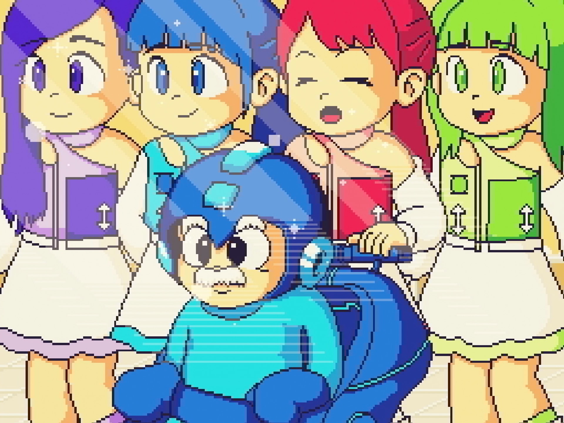 We have planned and produced a music video smartphone game, “ROCKMAN 20 XX 〜Fight! TEAM SHACHI〜” released in September. This game is a collaborative project of a super “kawaii” Japanese girl band, TEAM SHACHI and the action game series, ROCKMAN (English title: MEGAMAN) which has been popular in the last three decades.