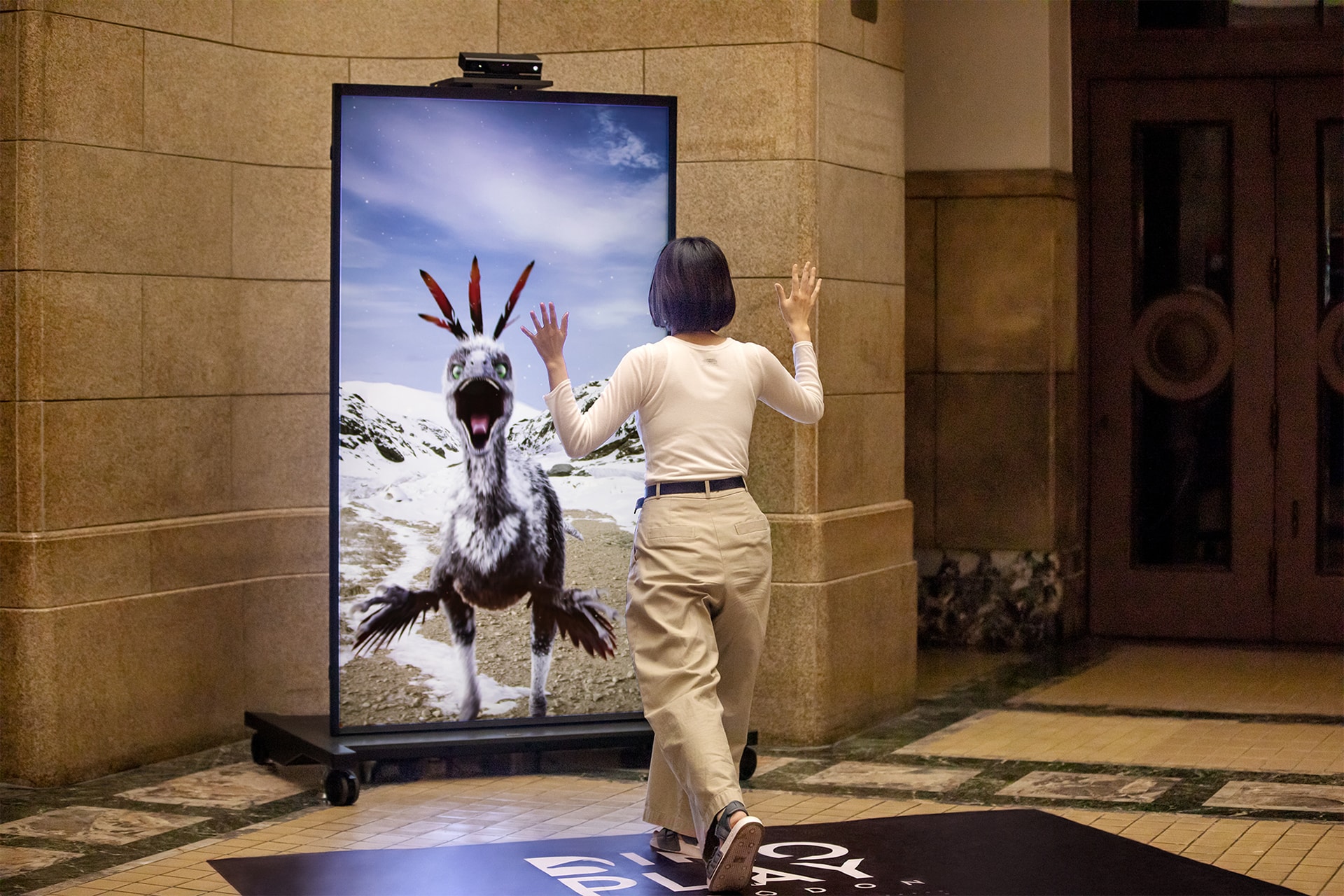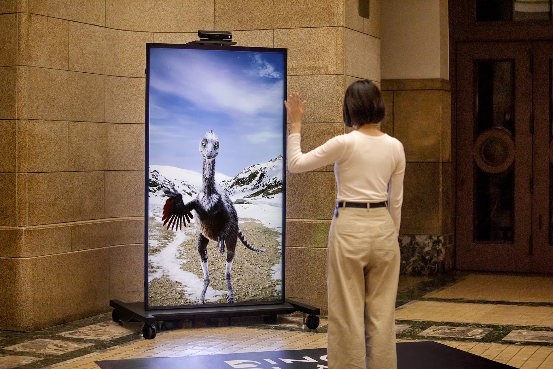 As part of the event, we were involved with the creative direction for “DINO PLAY,” an activity that allowed visitors to play and interact with a full skeletal replica of a Troodon, the first publicly-exhibited dinosaur. In response to the movements of people standing in front of the screen, the Troodon carried out various actions, and the visitors could also take a commemorative photo with it. During the event, a lot of people tried out this content, and it has been successfully displayed at 12 other locations all over Japan since then.