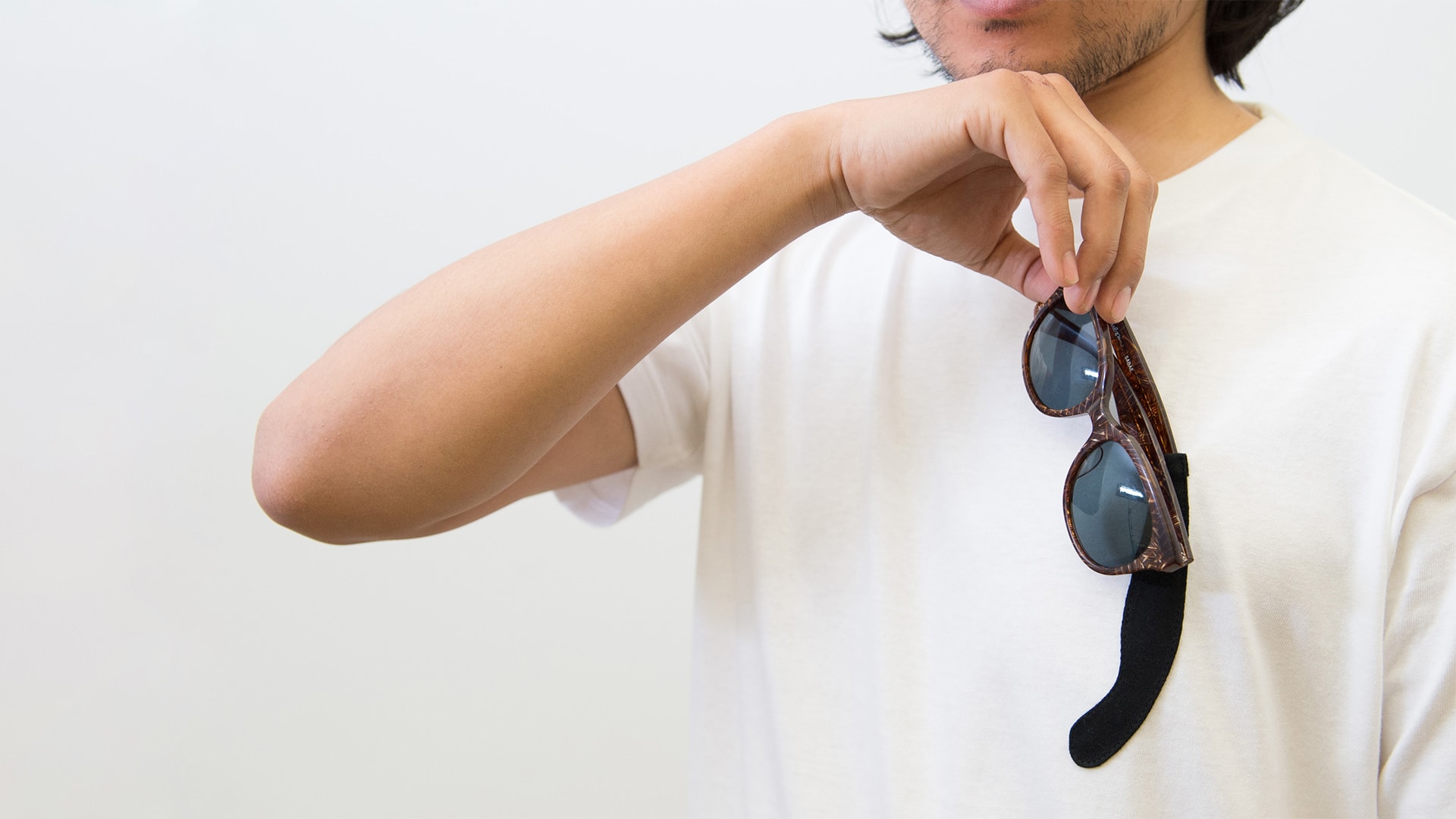 Temple is a T-shirt fitted with a special pocket to snugly hold the arm, or temple, of your sunglasses.