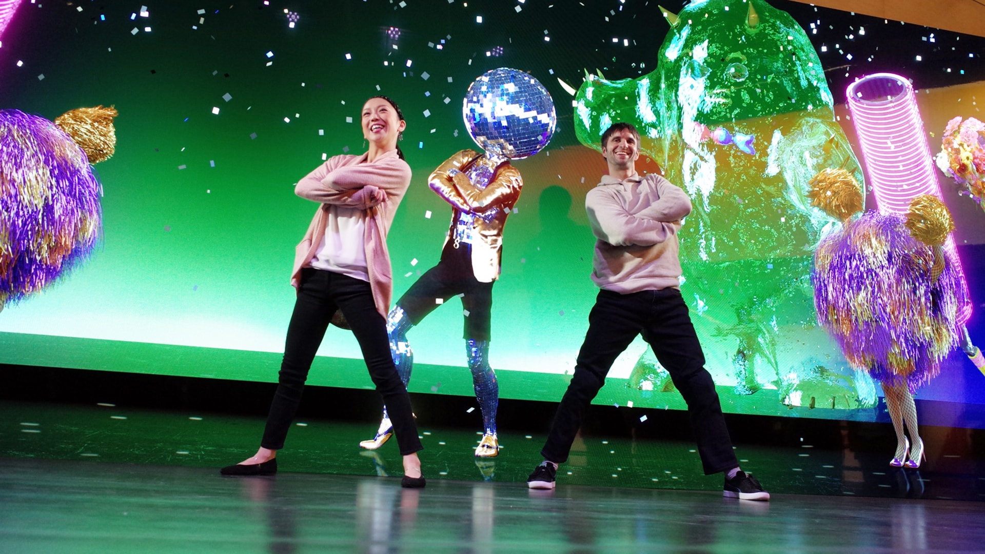A special performance taking place at every hour featured a real dancer on stage, who was invited to dance together with “Mirrorball Man” in front of the display, magically blurring the boundaries of reality and virtual reality.