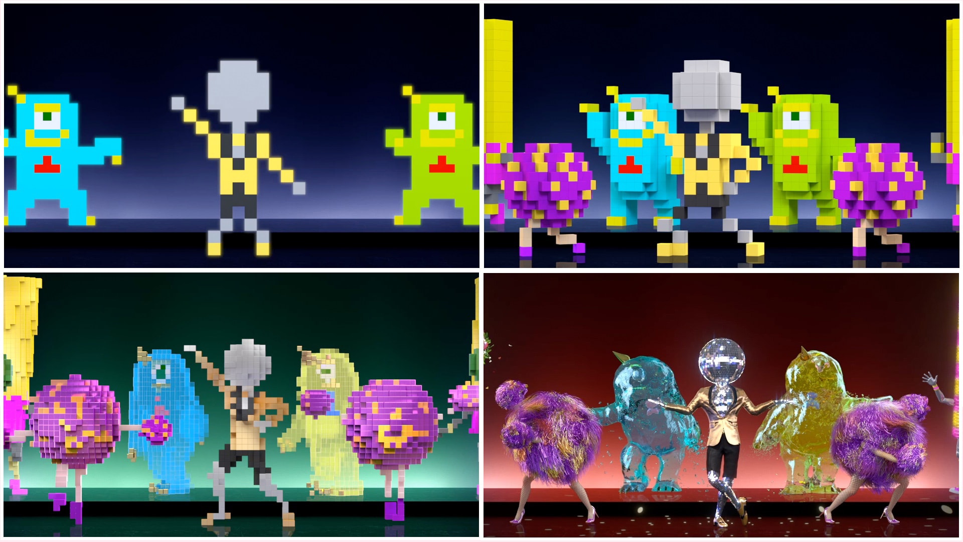 To demonstrate the beauty of SONY’s latest 8K definition display “Crystal LED Integrated Structure” at CES 2017, we created “Evolution of Imagery” – a special film, where 8-bit characters take center stage and dance, to eventually evolve into a stunning 8K resolution.