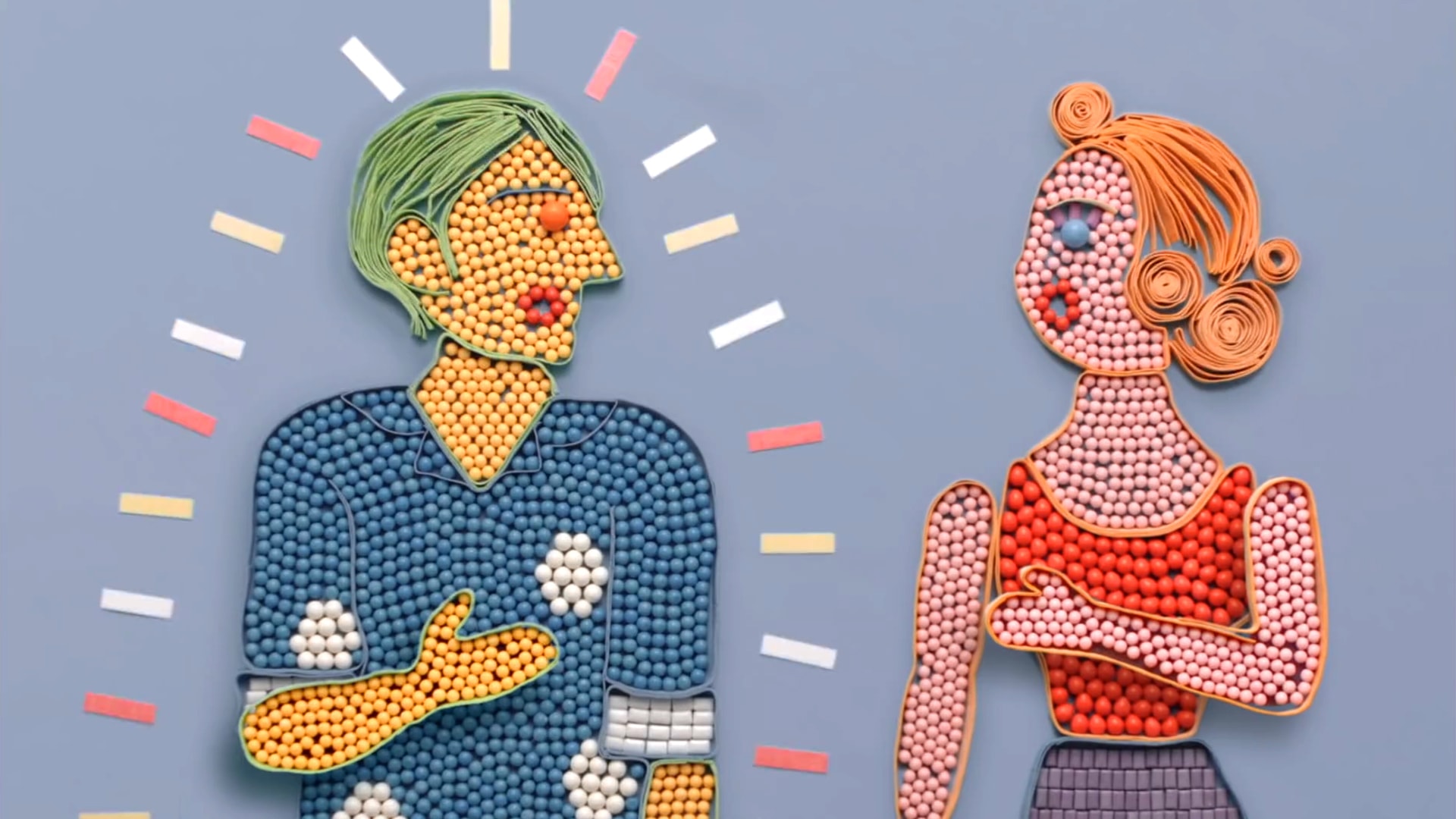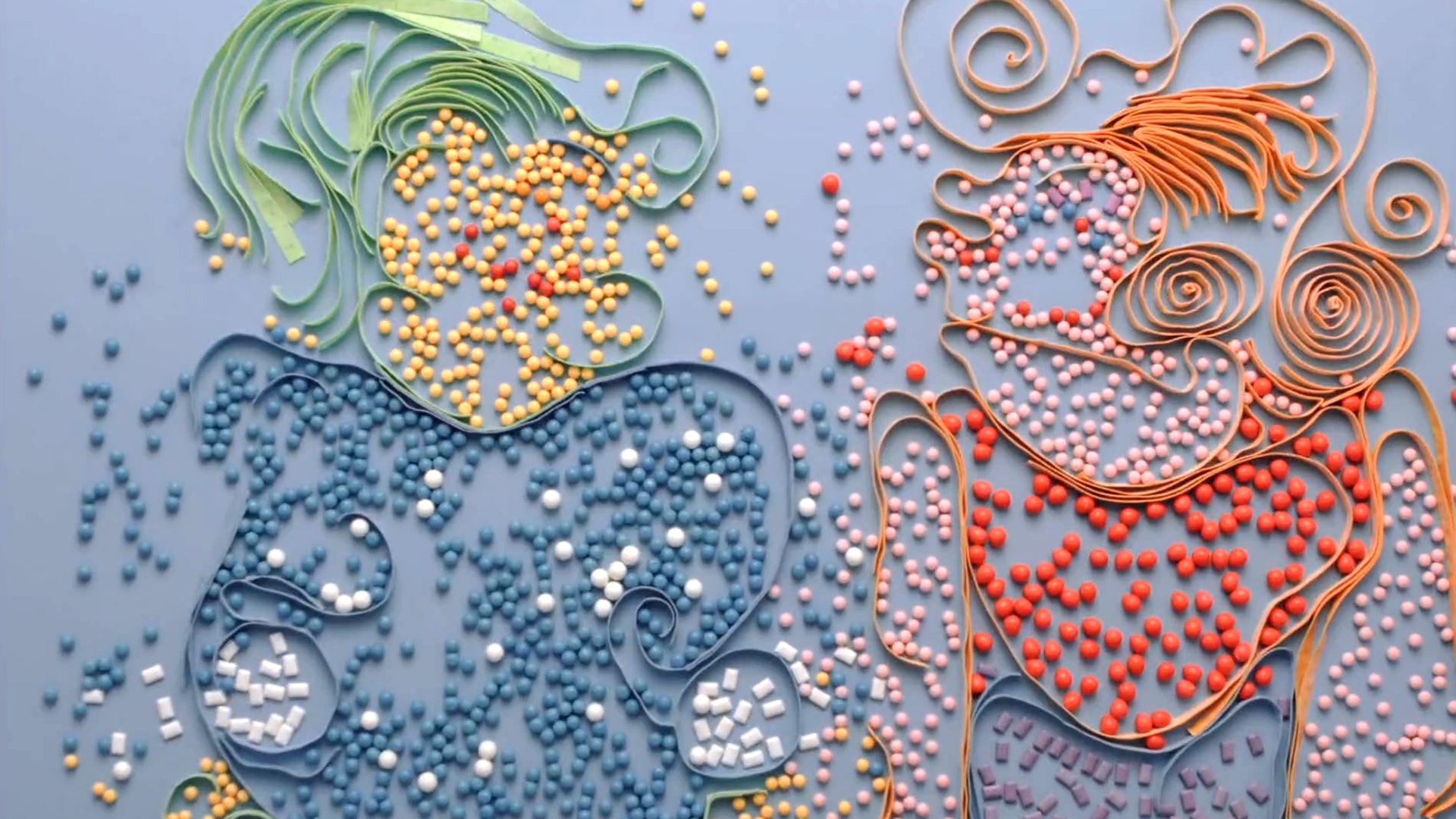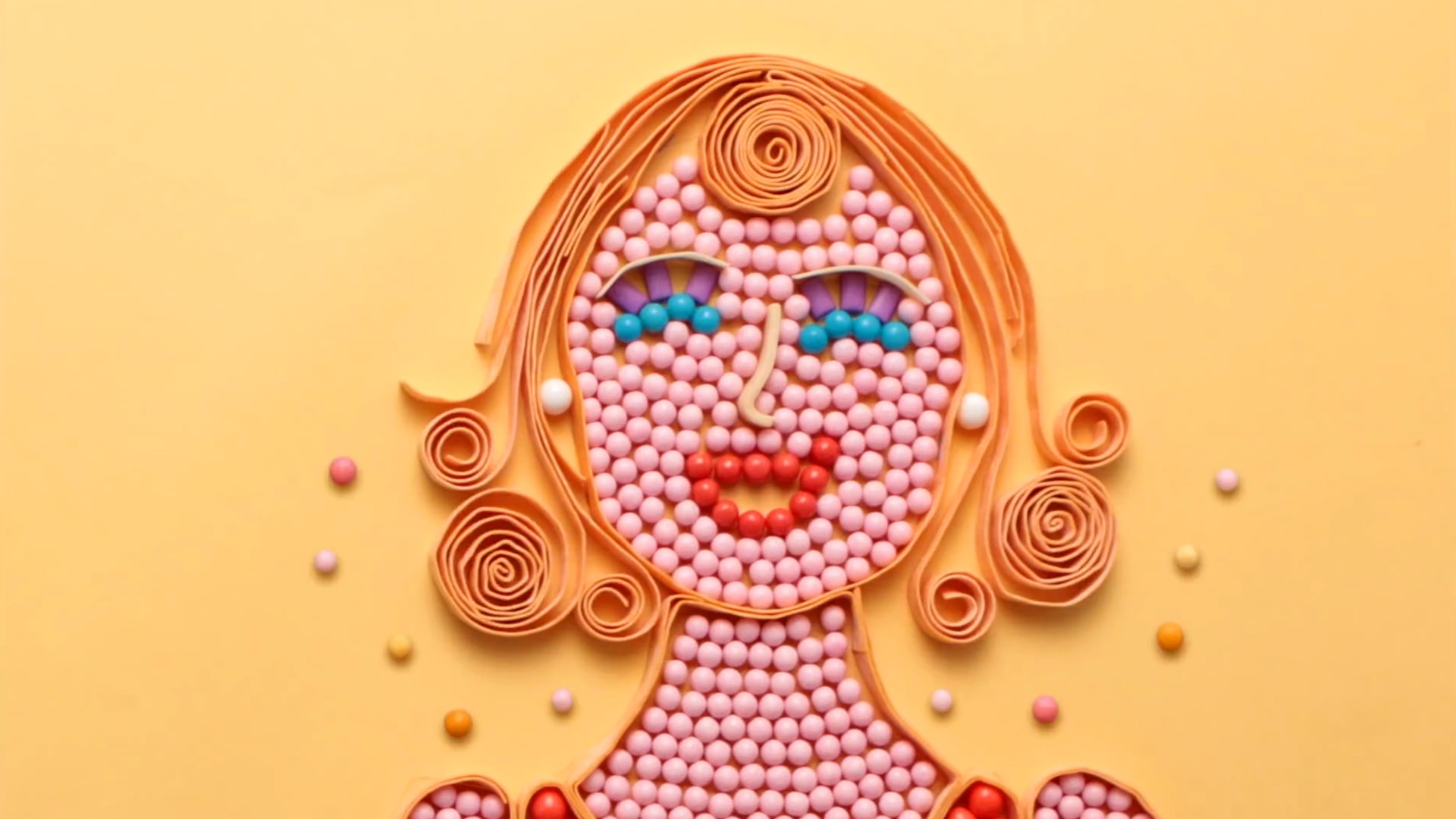 This love song is about a man who wishes for his love to not disappear like the “taste of chewing gum.” To visualize this story, we used more than 10000 gum balls and over 630 meters of gum to create an animation using only real chewing gum. We lined up colorful gum balls and chewing gum pieces to make a stop-motion animation and blew bubble gum in sync with the music.