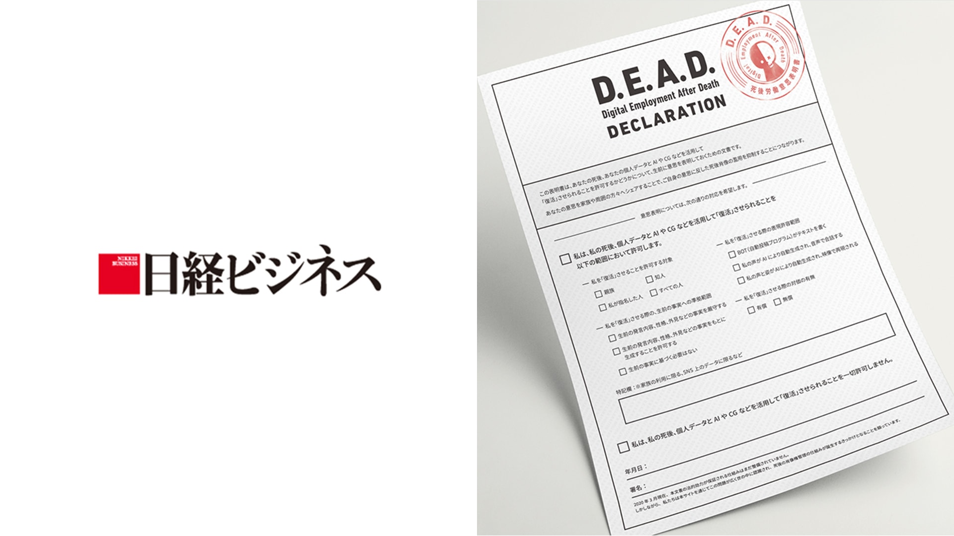 “D.E.A.D.” an online platform that allows you to make a statement about how you wish your likeness to (not) be handled after death was featured in the Nikkei Business.