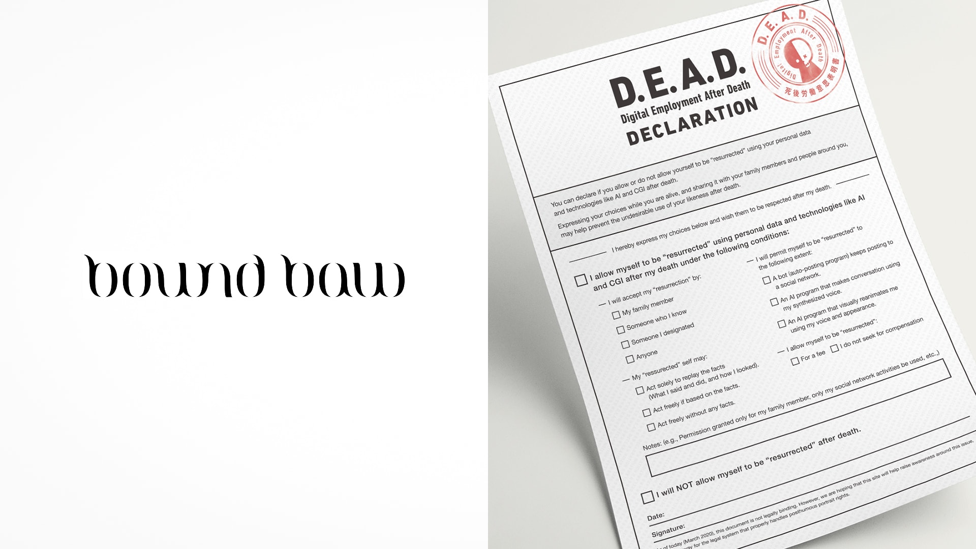 You can experience D.E.A.D,” an online platform that allows you to make a statement about how you wish your likeness to (not) be handled after death, here -> https://dead.work/