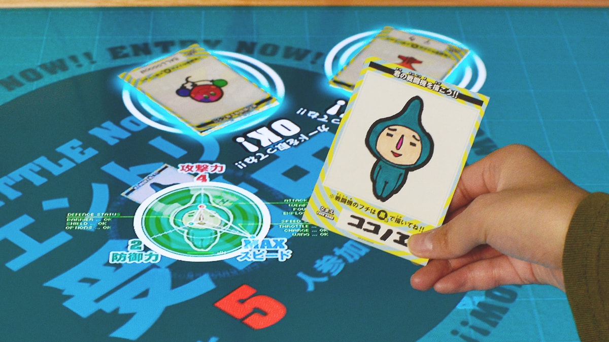 To play this game, the user draws a fighter aircraft on a special card and places the card on top of a digital display for the drawing to be scanned. Once the scanning is over, the user can customize game parameters like the aircraft’s color, size, strength, and speed before engaging in a virtual battle with other players.