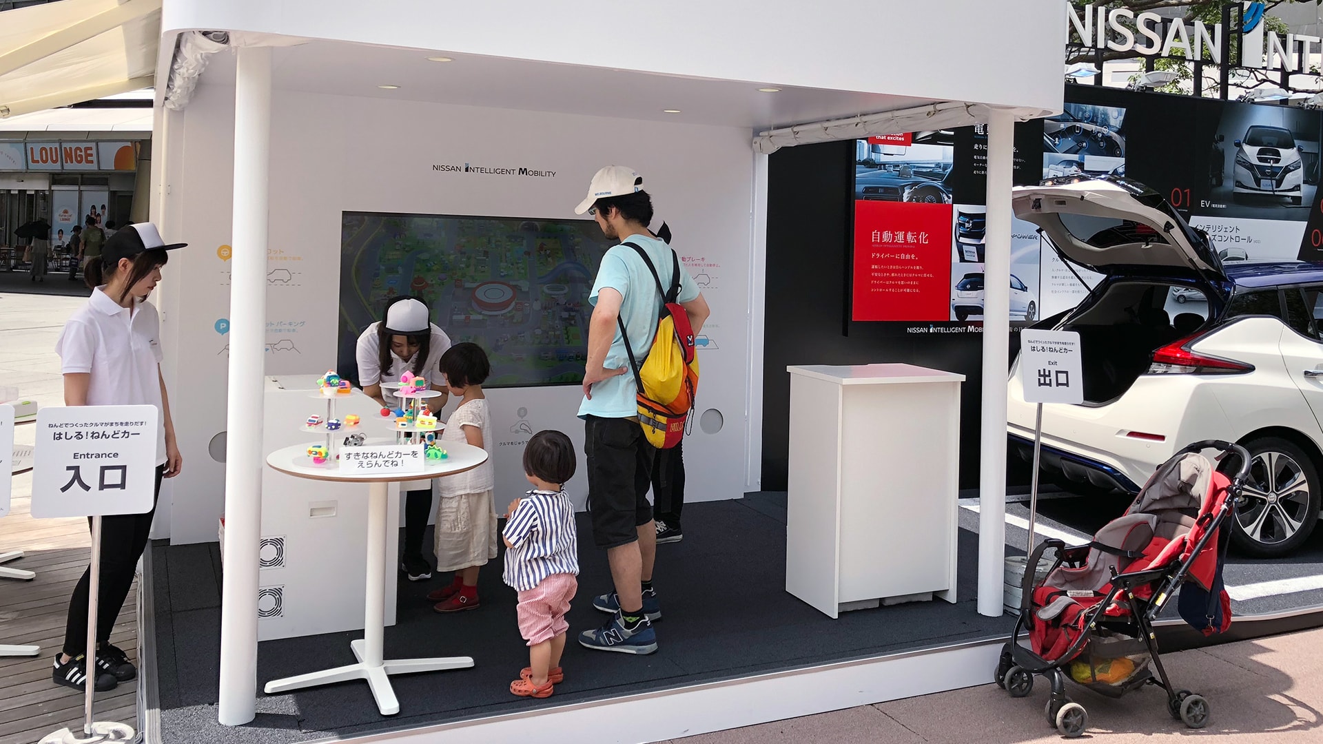 Nissan Motor hosted a fun event for kids to learn about the company’s latest Intelligent Mobility technology. Through a big touch display, children watched their vehicles drive around a virtual town and interacted by tapping the screen to place pedestrians on the roads or park their cars at electric charging stations.
