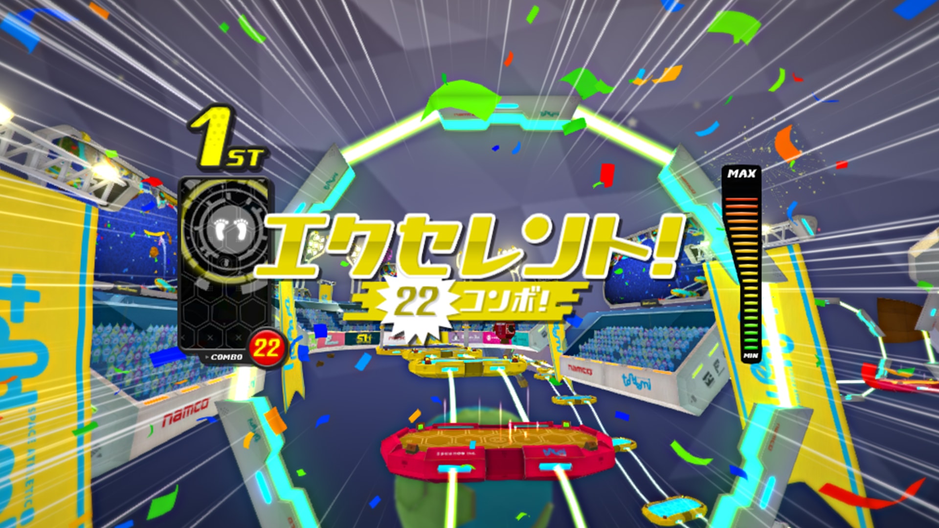 We created a motion detector that is able to measure vertical jump and speed with the help of projection mapping, allowing the player to fully control the galactic racing game just by jumping on the trampoline.