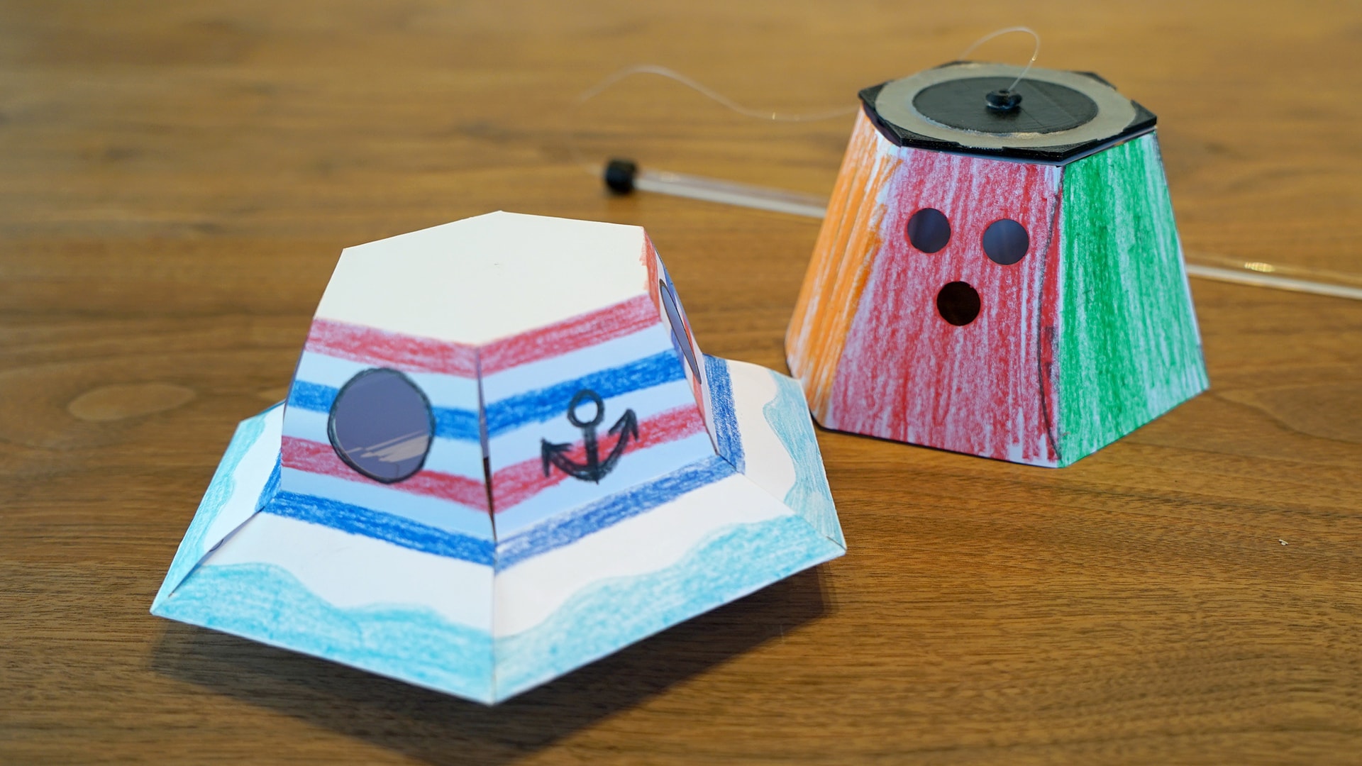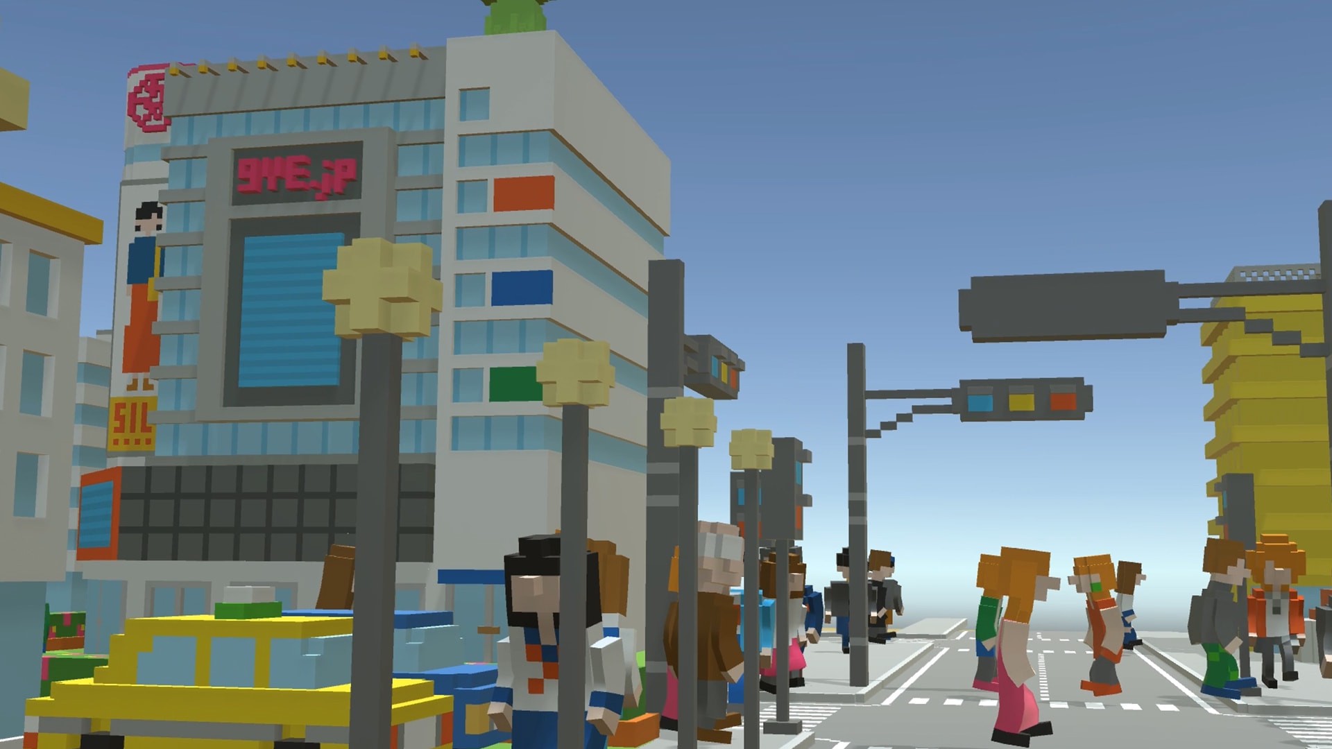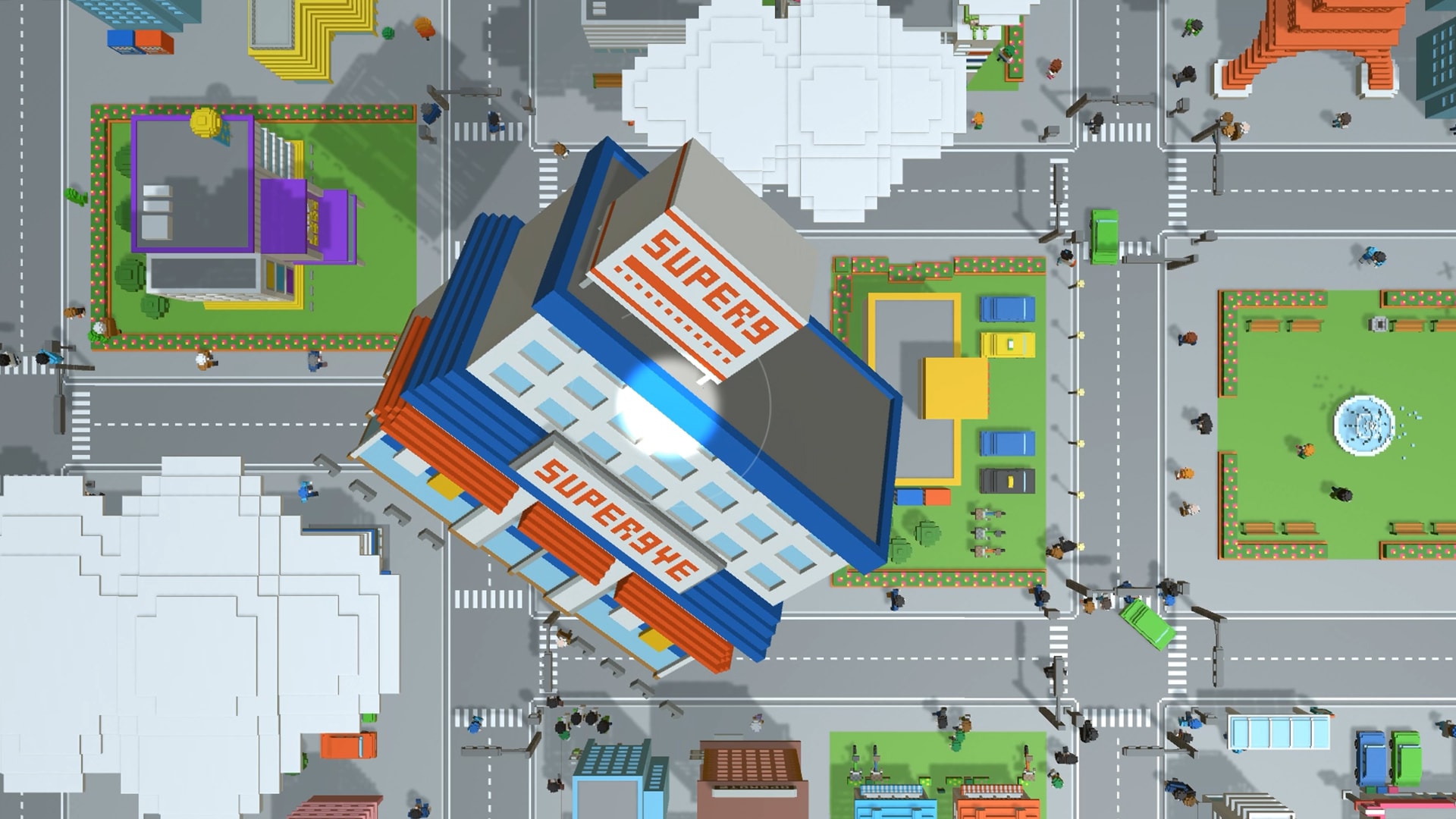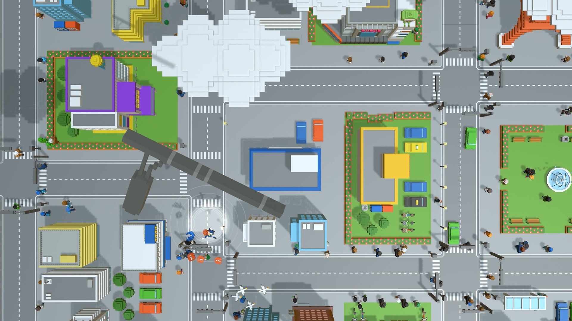 In this game, the player uses a UFO-shaped paper object to “capture” people on the ground.