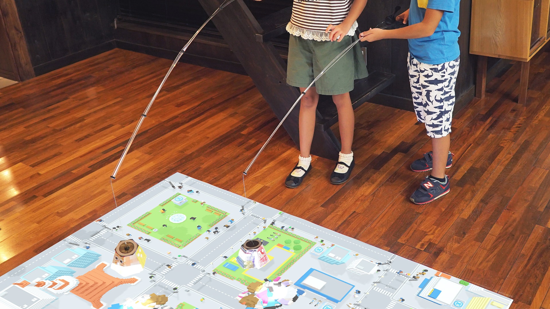 By placing the UFO on top of the video projection, animated graphics of humans will float up towards the vessel as if they were being abducted by aliens. The player can also decorate the object and keep it as a souvenir.
