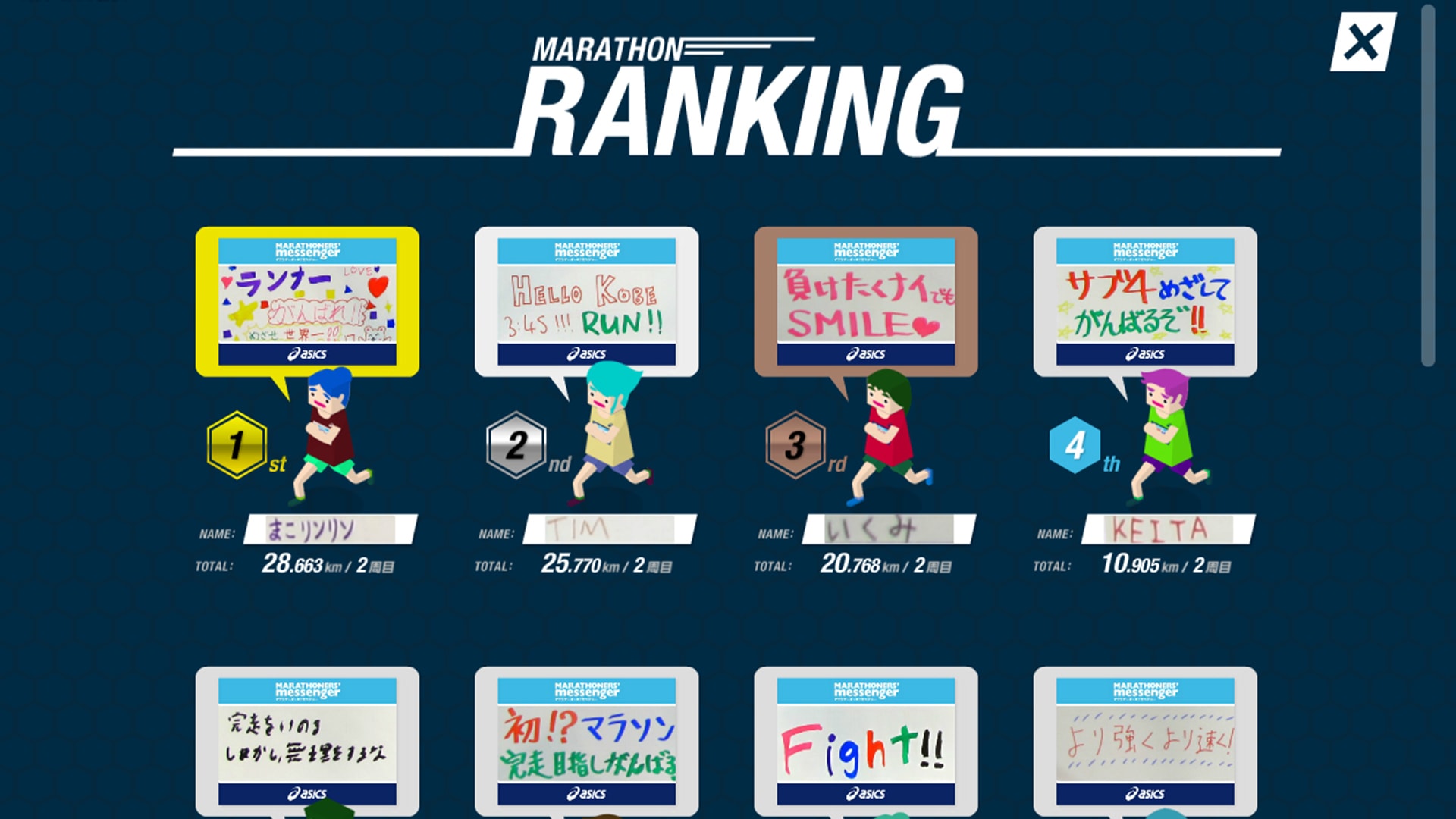 The Asics stall was well received and spinoffs for the Tokyo, Nara, and Kumamoto Marathons were created as a result.