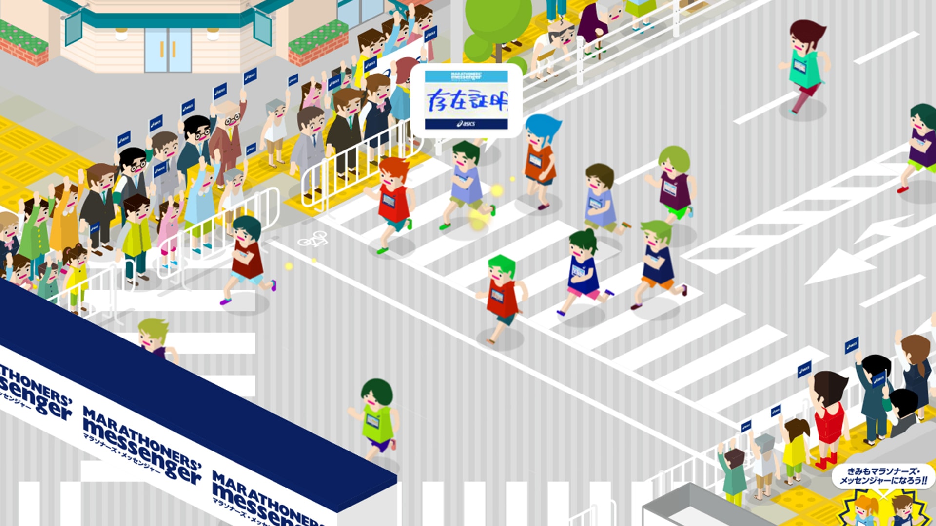 This experiential was made for the Asics stall at the Kobe Marathon Expo, where participants of the marathon were invited to write down their aspirations for the race. Generated by scanning the written content, the runner’s virtual avatar, which can be customized in terms of speed and stamina, is used to compete with other avatars online in a virtual race.