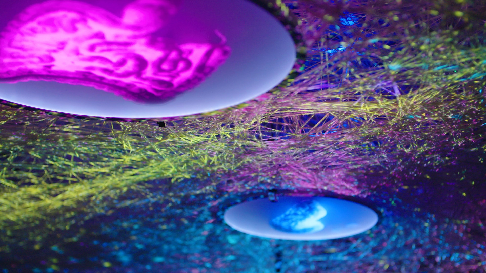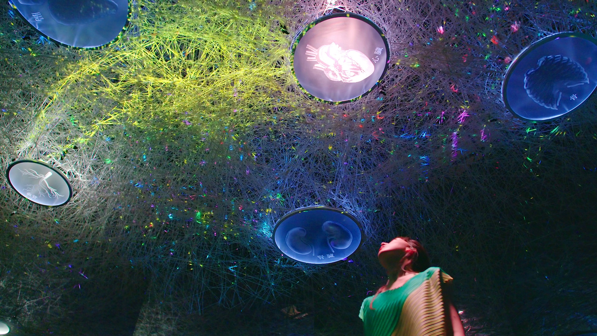 The overlapping messages from various organs create what could be described as a “bodily symphony,” producing beautiful music. Combined with the colors and sounds, this creates a mystical space, illustrating the body’s internal network.