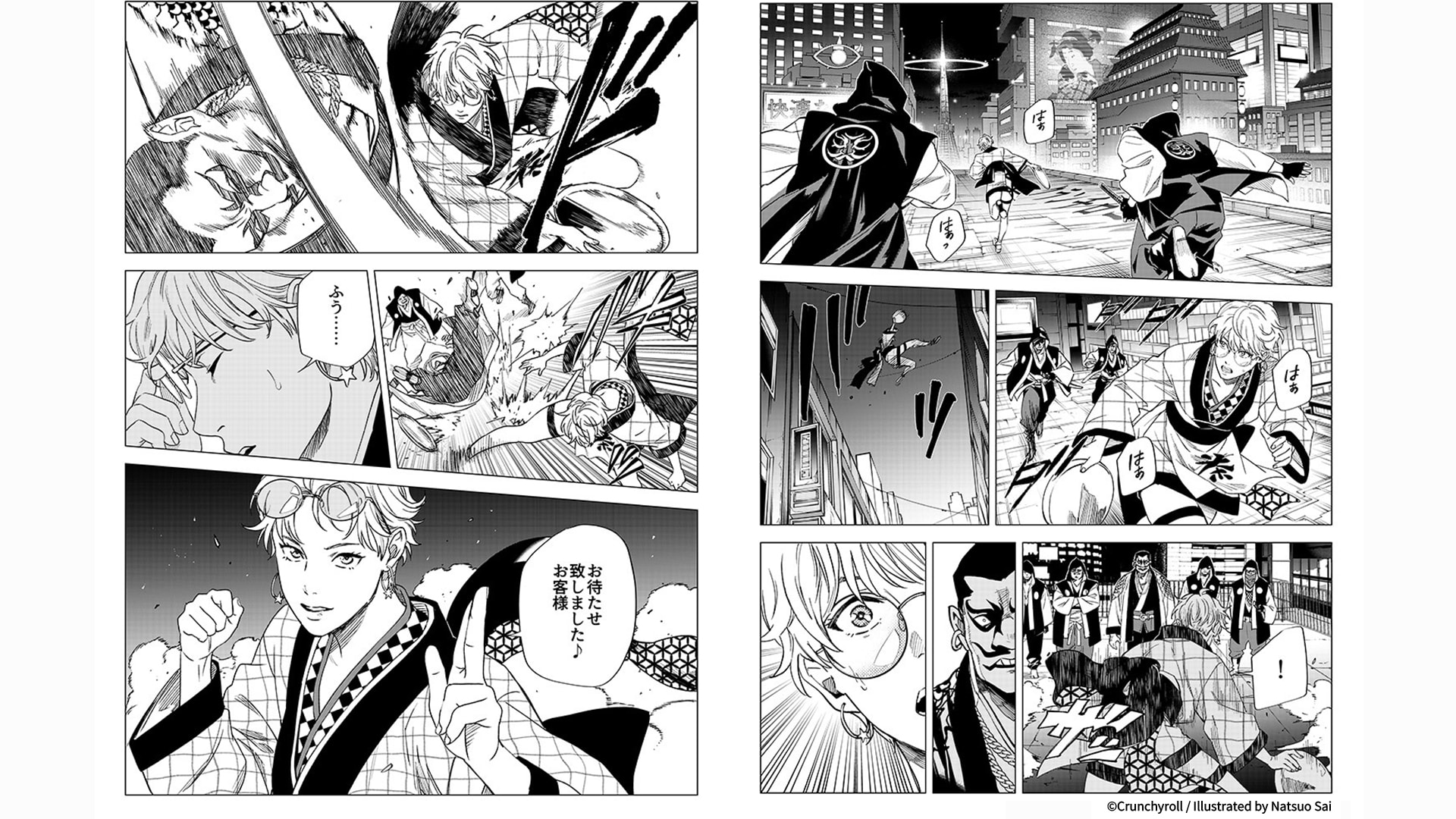 Based on four original storylines conceived by Crunchyroll, including battle manga and romance manga, we collaborated with four renowned manga artists—Hirofumi Neda, Tina Yamashina, Tomofumi Ogasawara, and Natsuo Sai—to create original manga. These works have been incorporated into various visuals used in the rebranding efforts, serving as a crucial element in establishing Crunchyroll’s new brand identity.