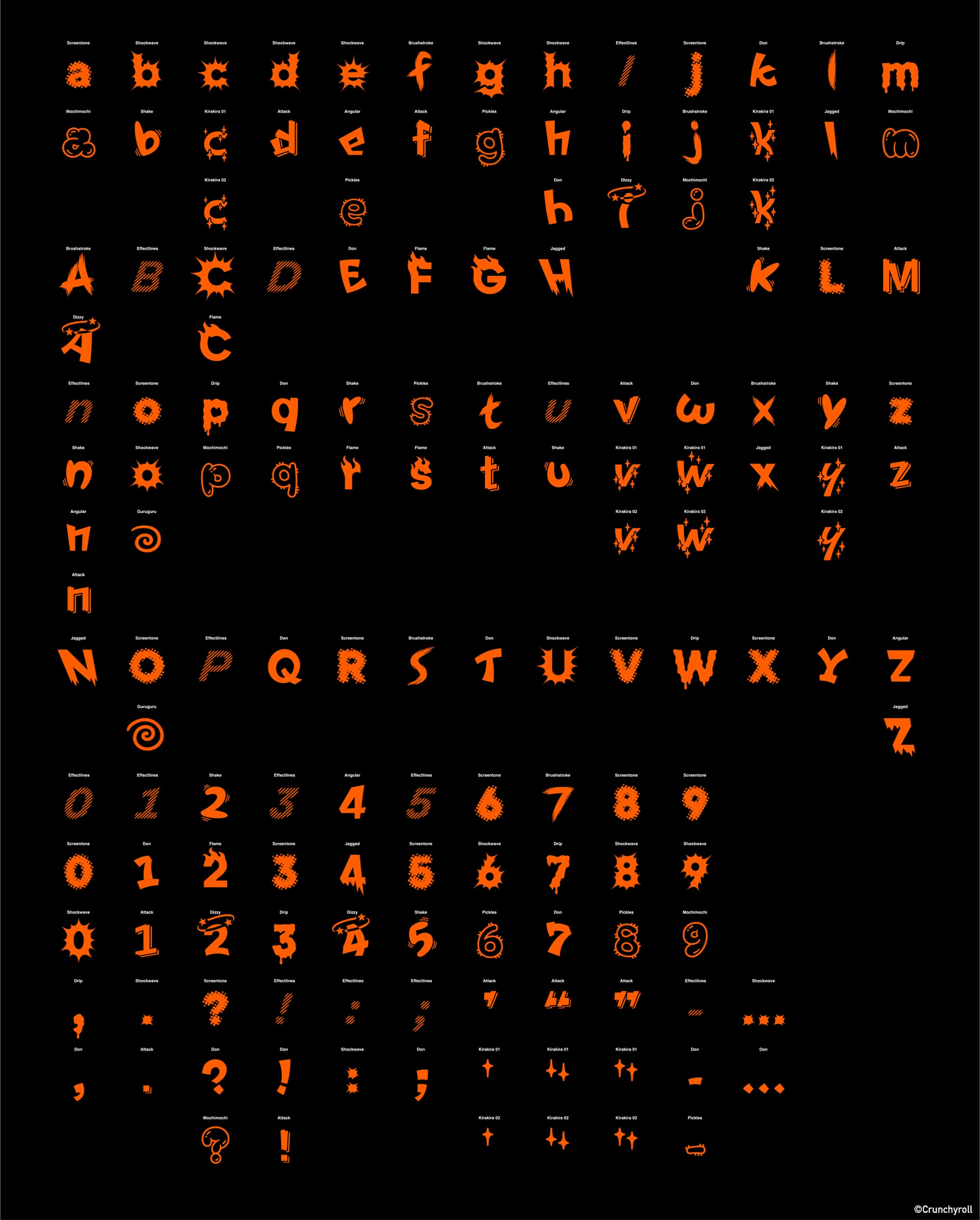 Inspired by 16 unique expressions characteristic of manga and anime, such as “manpu” (manga symbols) and “onomatopoeia,” we have created over 100 originally designed letters (or glyphs) with Crunchyroll. These glyphs, when combined with Crunchyroll’s new brand font (ATYP), provide a simple yet effective way to convey the joy and essence of manga and anime that Crunchyroll aims to promote across various contexts.