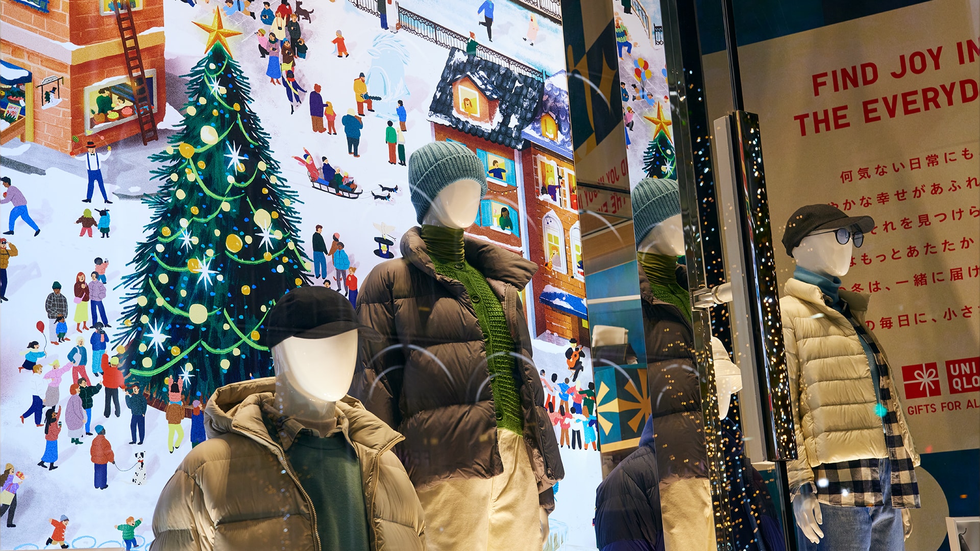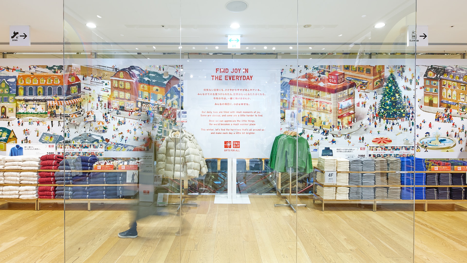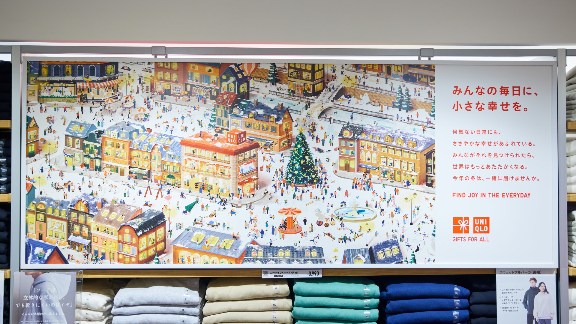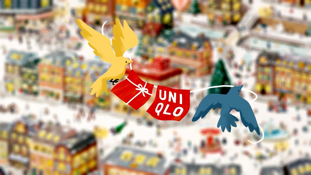 In the style of Wimmelbook, we portrayed an imaginary cityscape centered around UNIQLO stores, where people experience various “small joys” in their daily lives. The visuals communicate UNIQLO’s philosophy of “LifeWear” – the ultimate everyday clothing – alongside the festive spirit of the holiday season, aiming to reach people worldwide. We also produced a special movie featuring approximately 1,400 animated characters, showcased in about 3,000 stores across 27 countries.