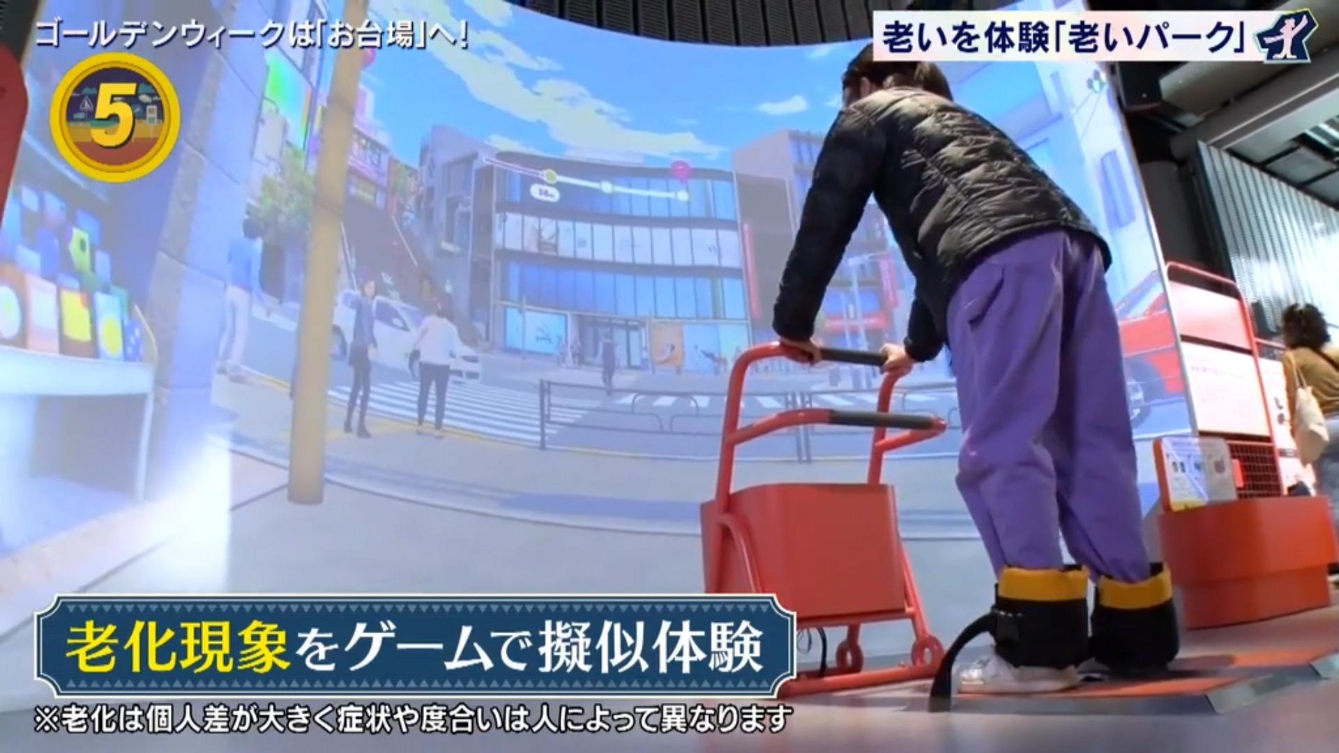 Park of Aging, which we helped create for the Miraikan (The National Museum of Emerging Science and Innovation), was featured in the April 20th broadcast of the Japanese TV program “Shutsubotsu! Adomachikku tengoku”.